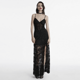 Gothic Dark Lace Daily Dress with Deep V-Neck and Side Slit
