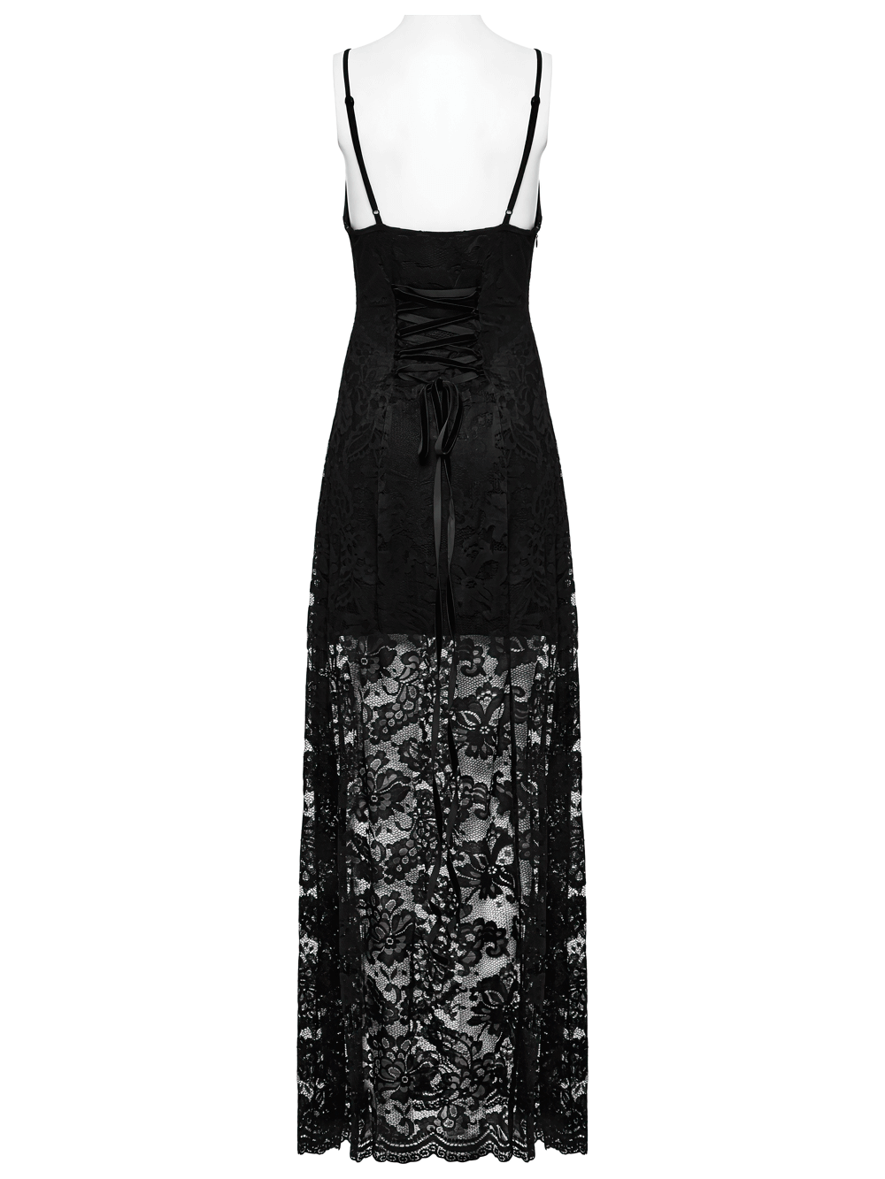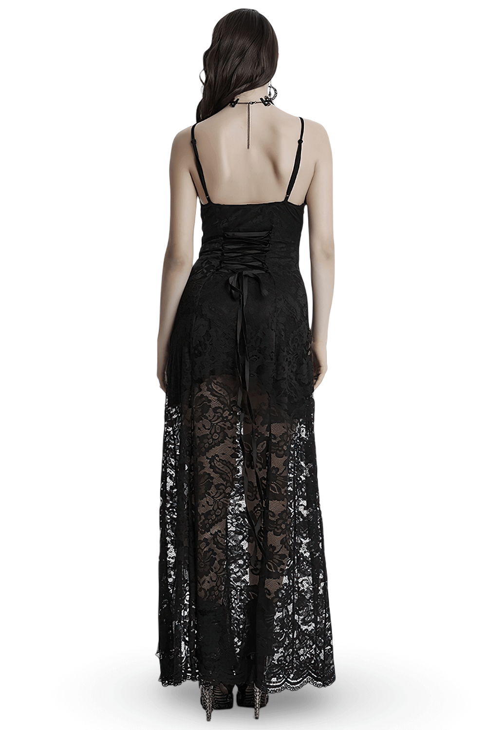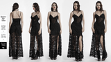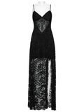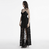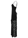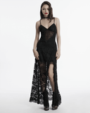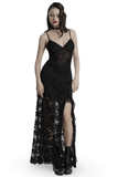 Gothic Black Lace Maxi Dress with High Slit and Corset Back