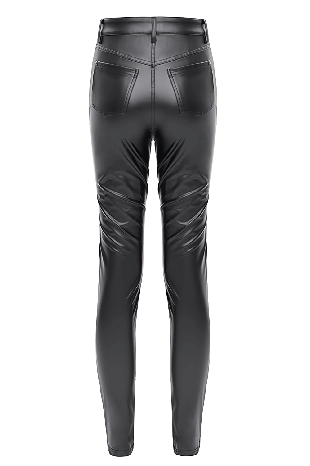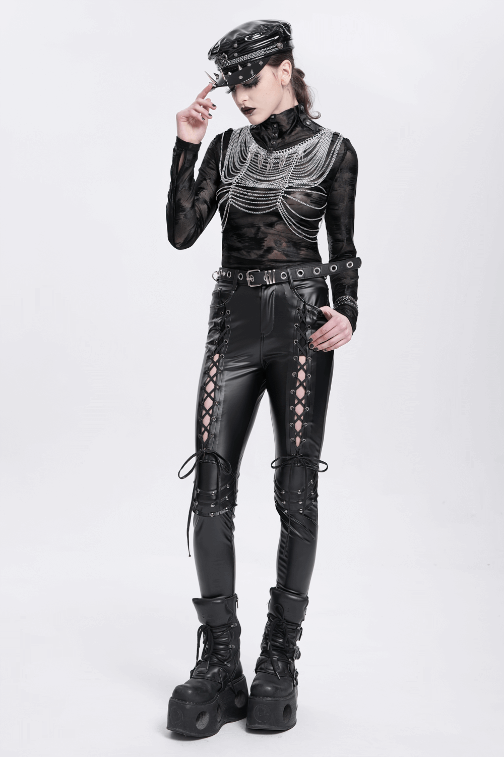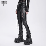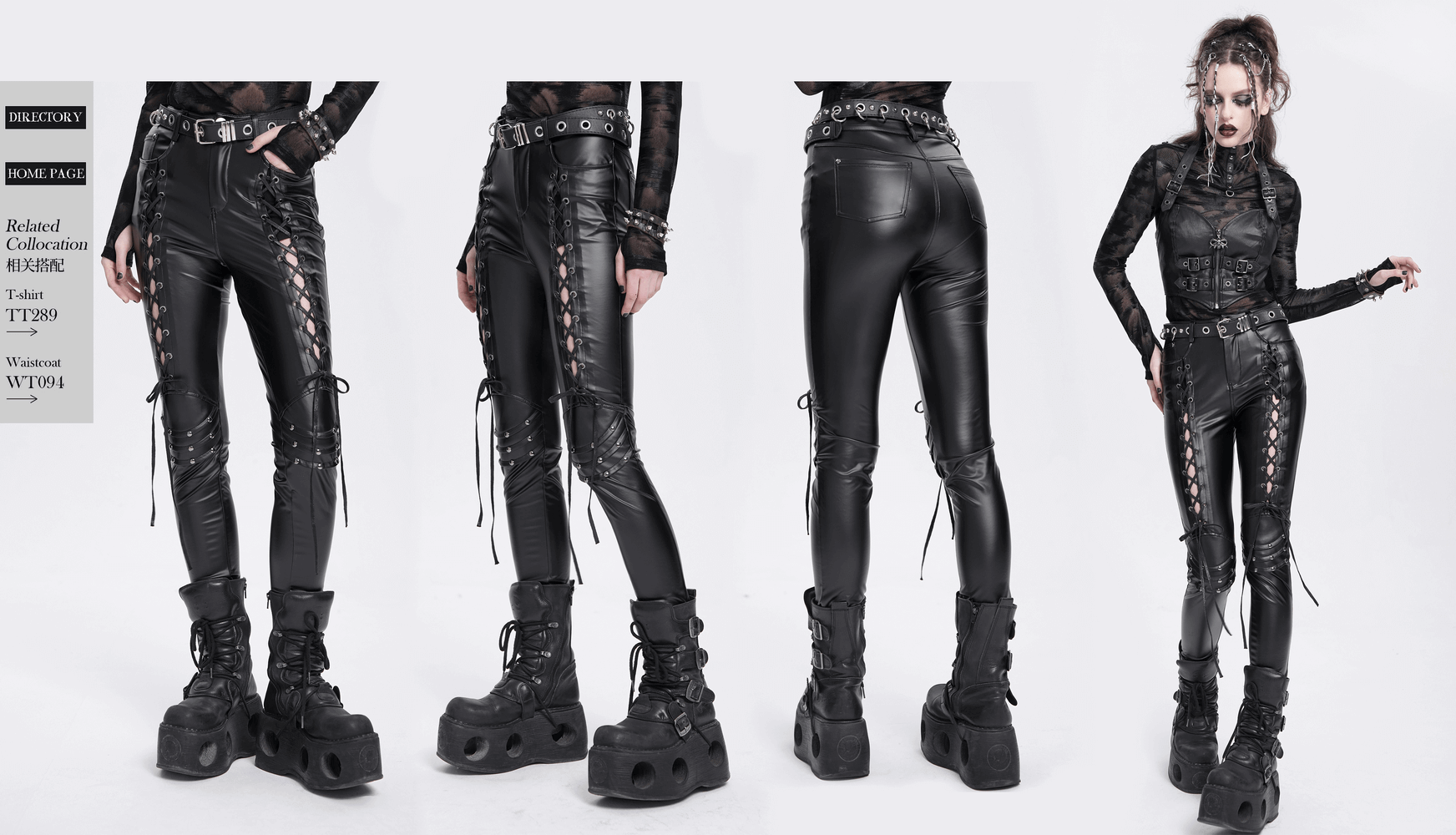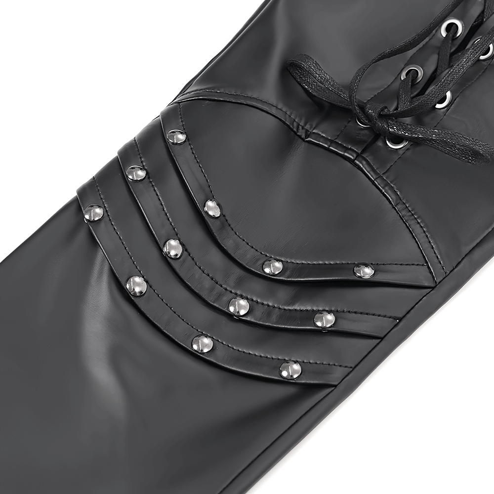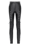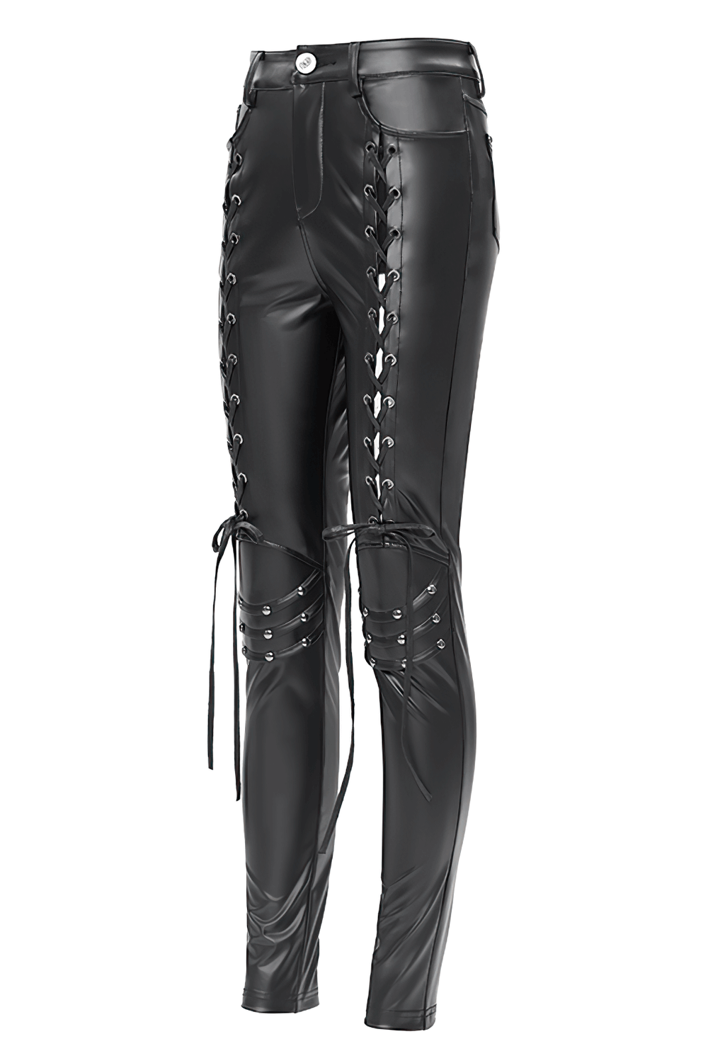 Synthetic Leather Punk Pants with Corset-Style Lacing