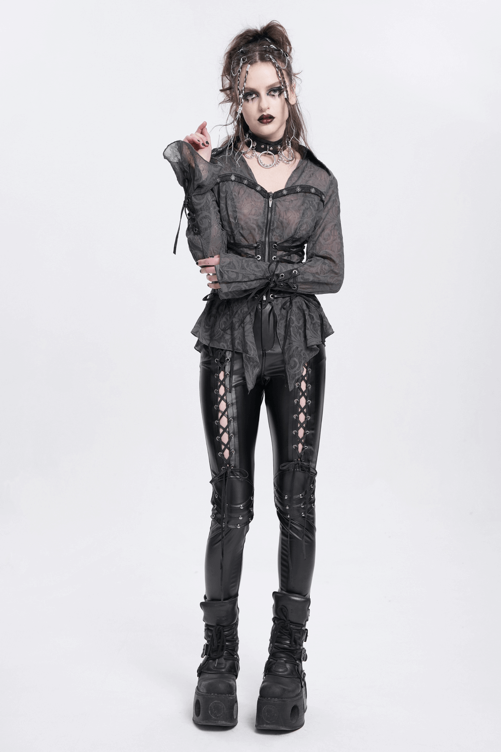 Gothic Black Lace-Up Trousers with Grommet Accents and Ties