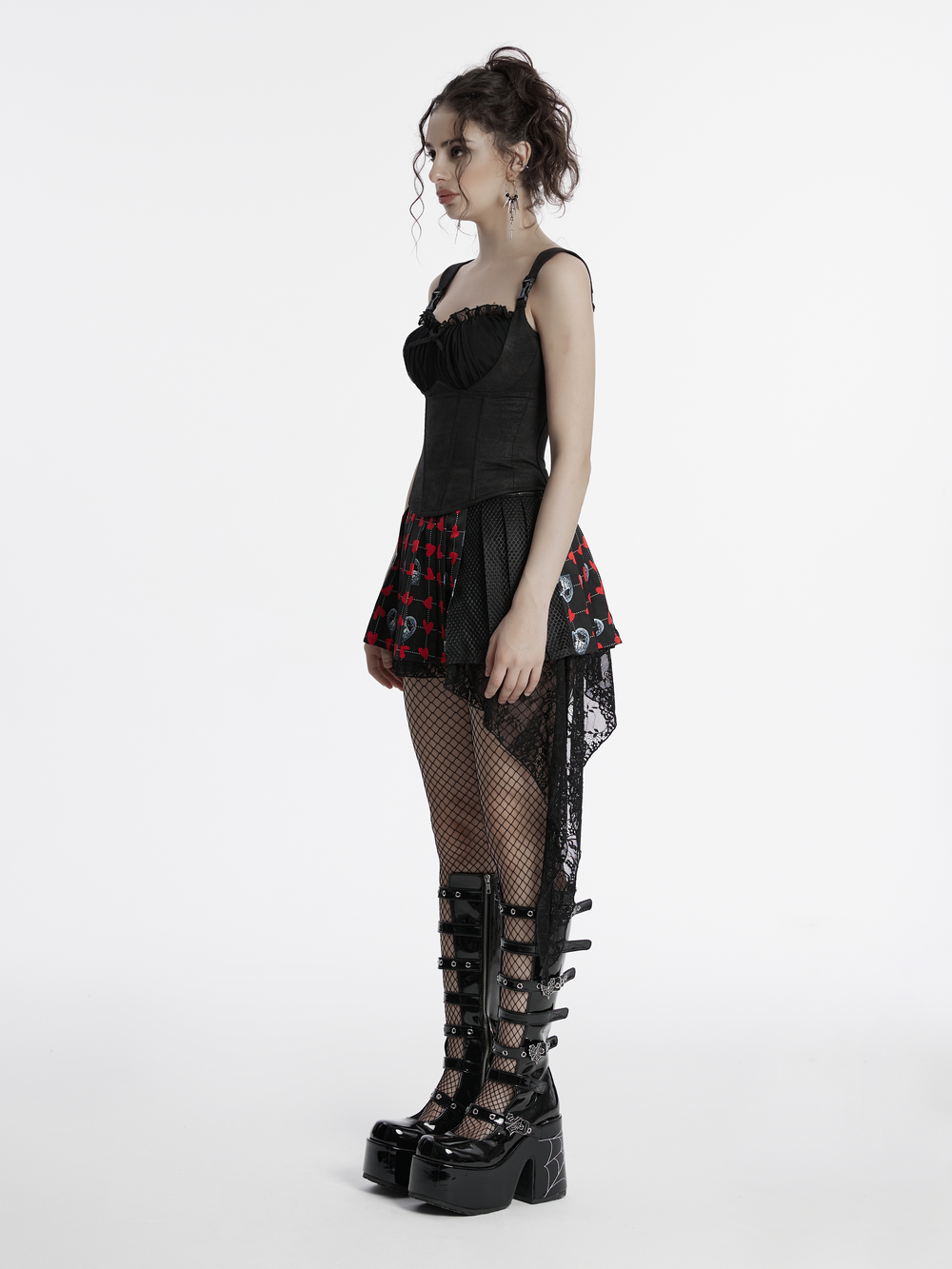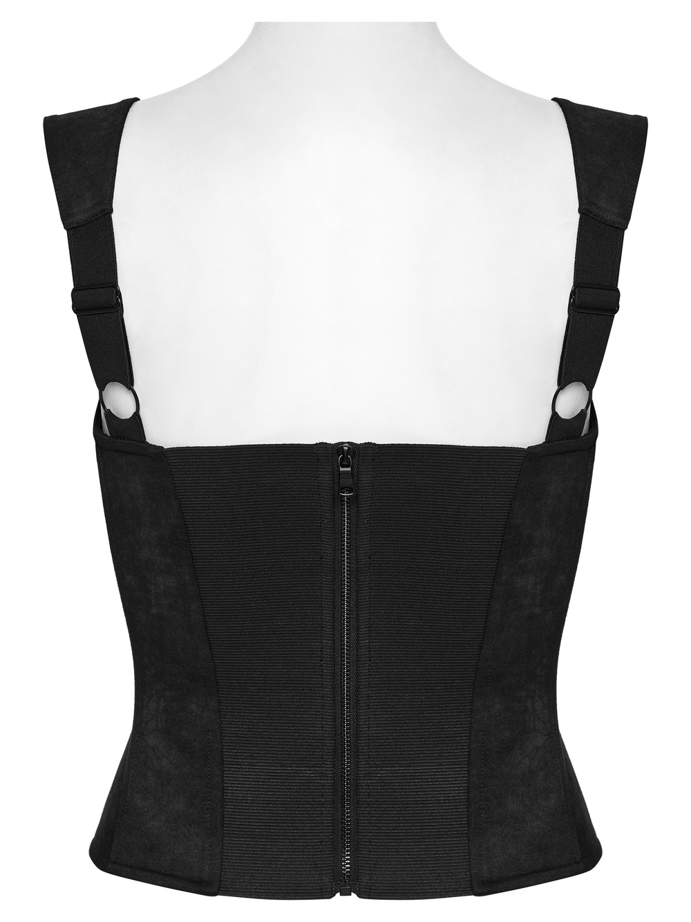 Gothic Corset Cami with Adjustable Straps and Front Zipper