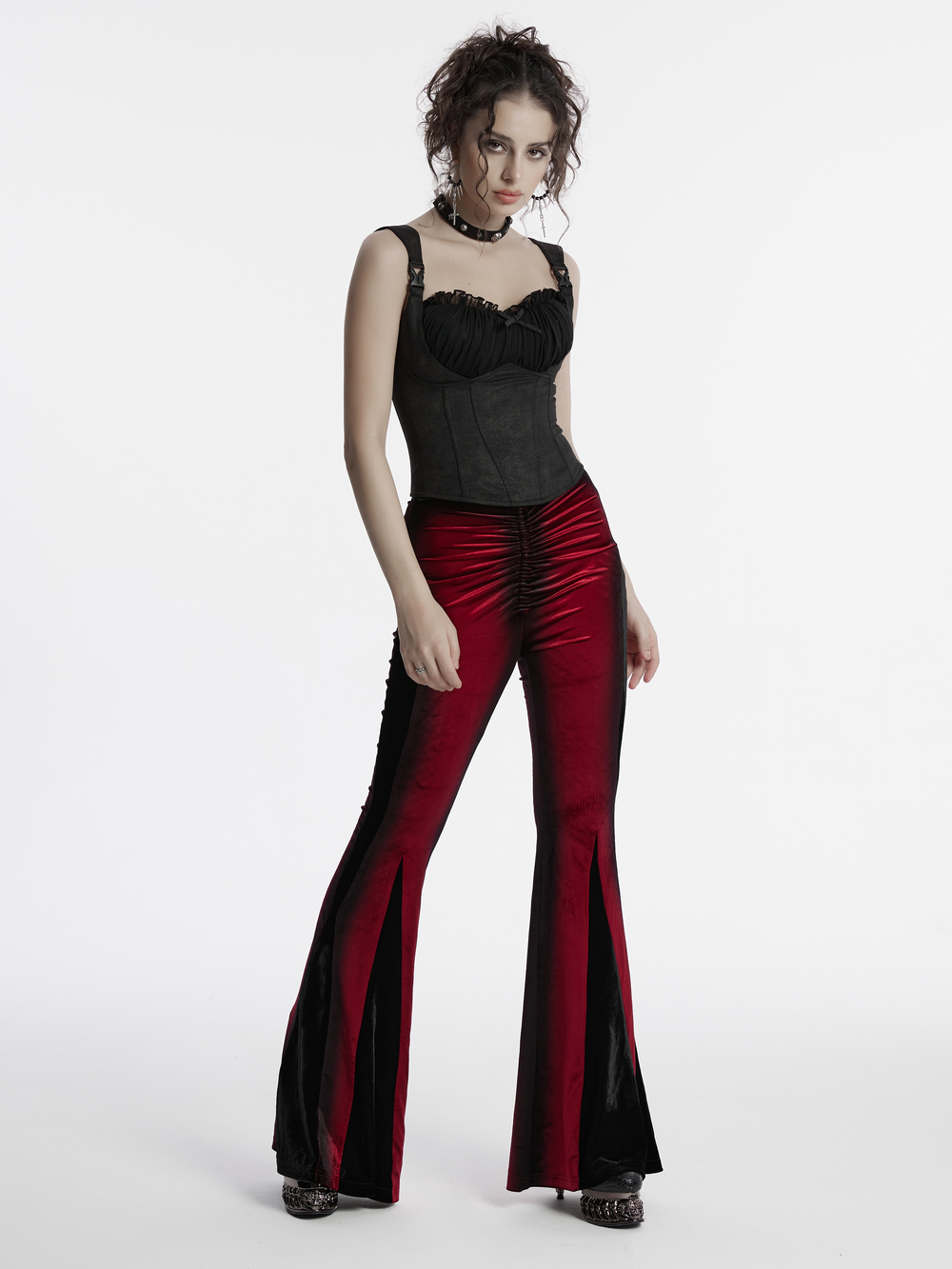 Gothic Corset Cami Top with Ruffled Pleats and Boned Waist