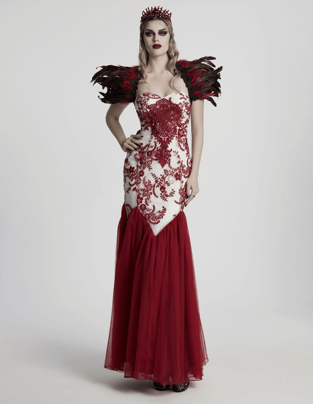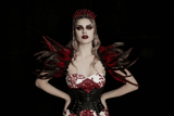 Striking Gothic Red Crystal Headband with Draped Chain Details