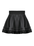 Gothic Satin Layered Mini Skirt with Ruffles and Bow Detail