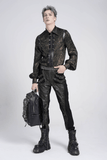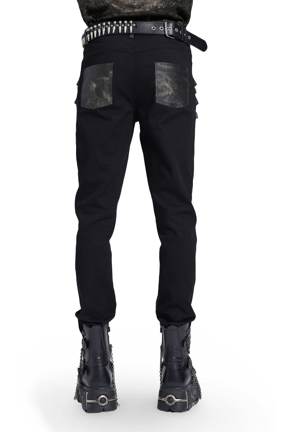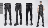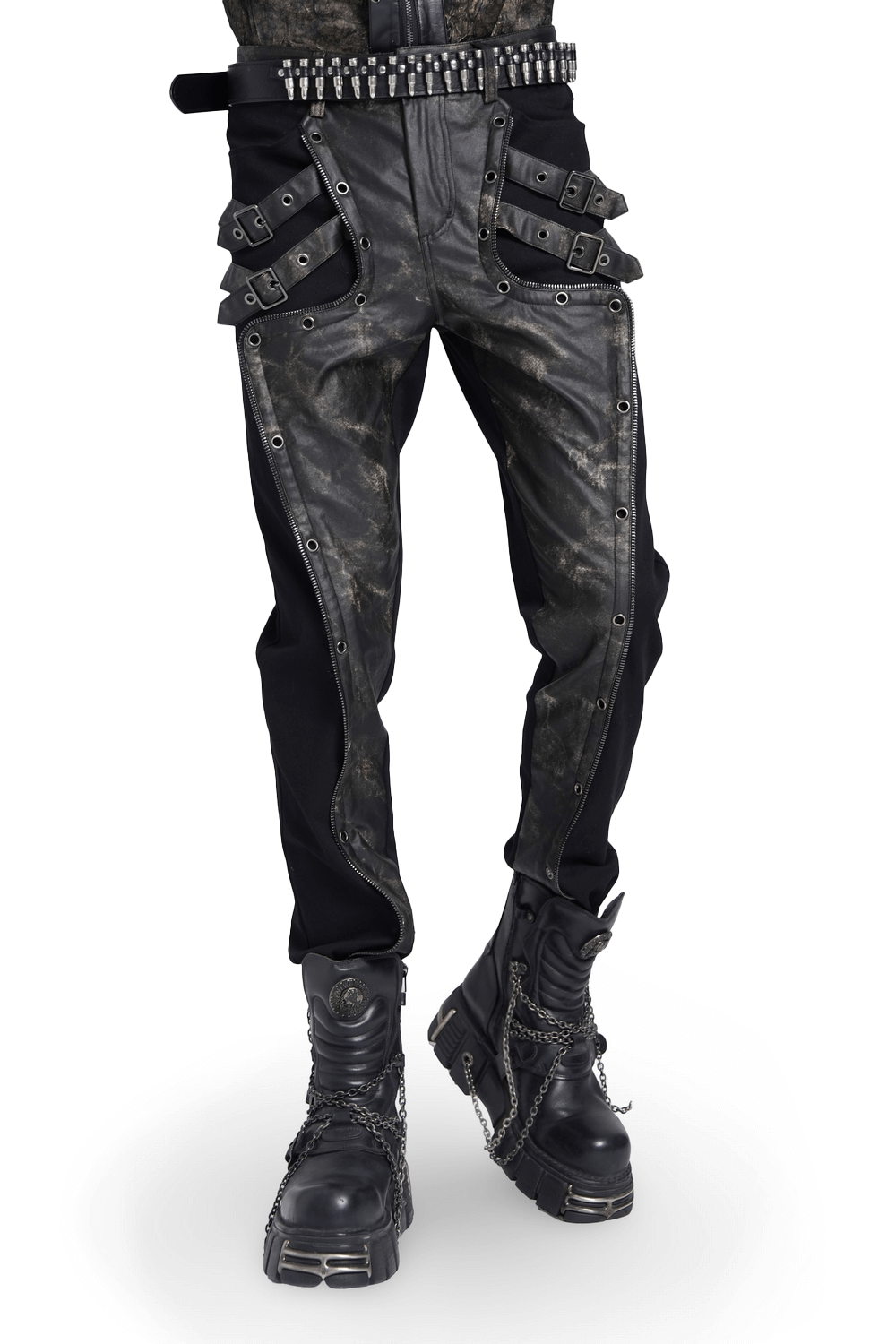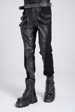 Dive into the underground with these men's gothic techwear pants, featuring distressed faux leather panels, metal rivets, and buckle straps. Combining industrial and cyberpunk styles, these pants are ideal for alternative fashion fans. Slim fit with a bold edge, perfect for festivals, gigs, and everyday rebellion. Pair with boots for the ultimate look.