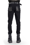 Black Industrial Punk Pants with Straps and Metal Rivets