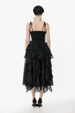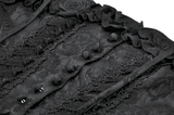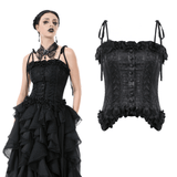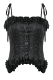 This gothic lace corset top combines dark romance with sophistication. Made from fine lace and brocade, it has adjustable ribbon straps for a personalized fit. The front buttons and ruffled trim add a touch of vintage charm, while the lace-up back enhances your figure. Ideal for gothic, steampunk, or Victorian styles, this bustier is a must-have for your alternative wardrobe.