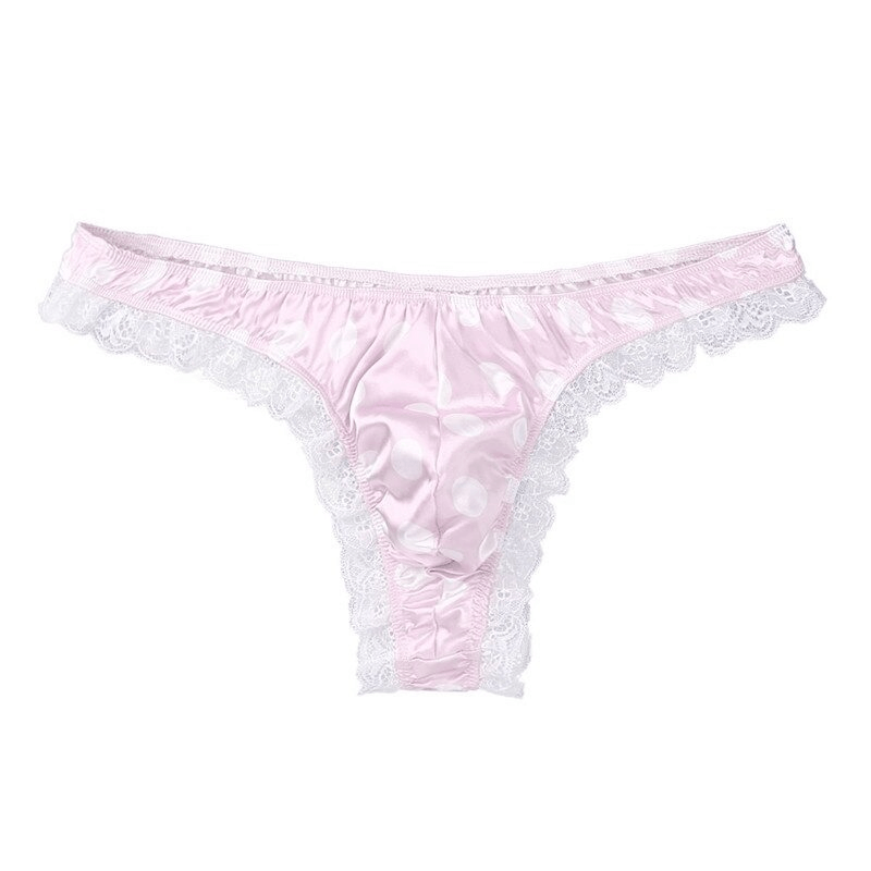 Culotte en dentelle à volants en satin brillant pour hommes / Lingerie de sous-vêtements Sissy à coupe haute pour hommes