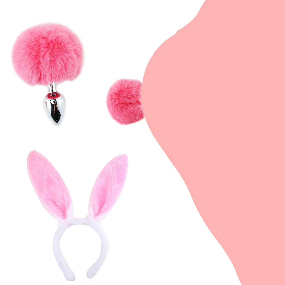 Plug anal en métal avec queue de lapin et oreilles en peluche/Jouet sexuel adulte cosplay de lapin mignon