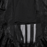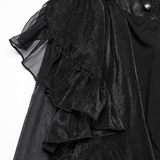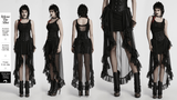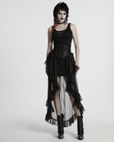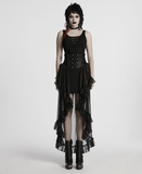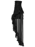 Crafted from glossy twill weave, stretchy knit, and chiffon, this skirt features a cinched waist with carved buttons and side drawstrings for a polished gothic vibe. Symmetrical lace accents at the waist evoke a gentle romantic mood. An adjustable back drawstring lets you tailor the fit, enhancing the dramatic flow and shaping a striking silhouette.