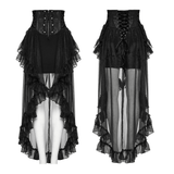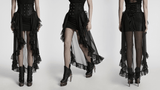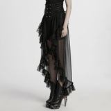 Romantic Gothic Chiffon Skirt with Delicate Lace Trim