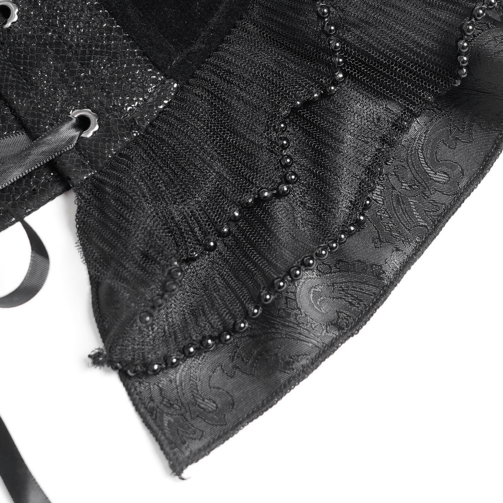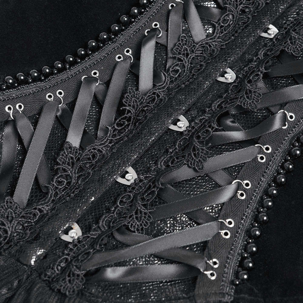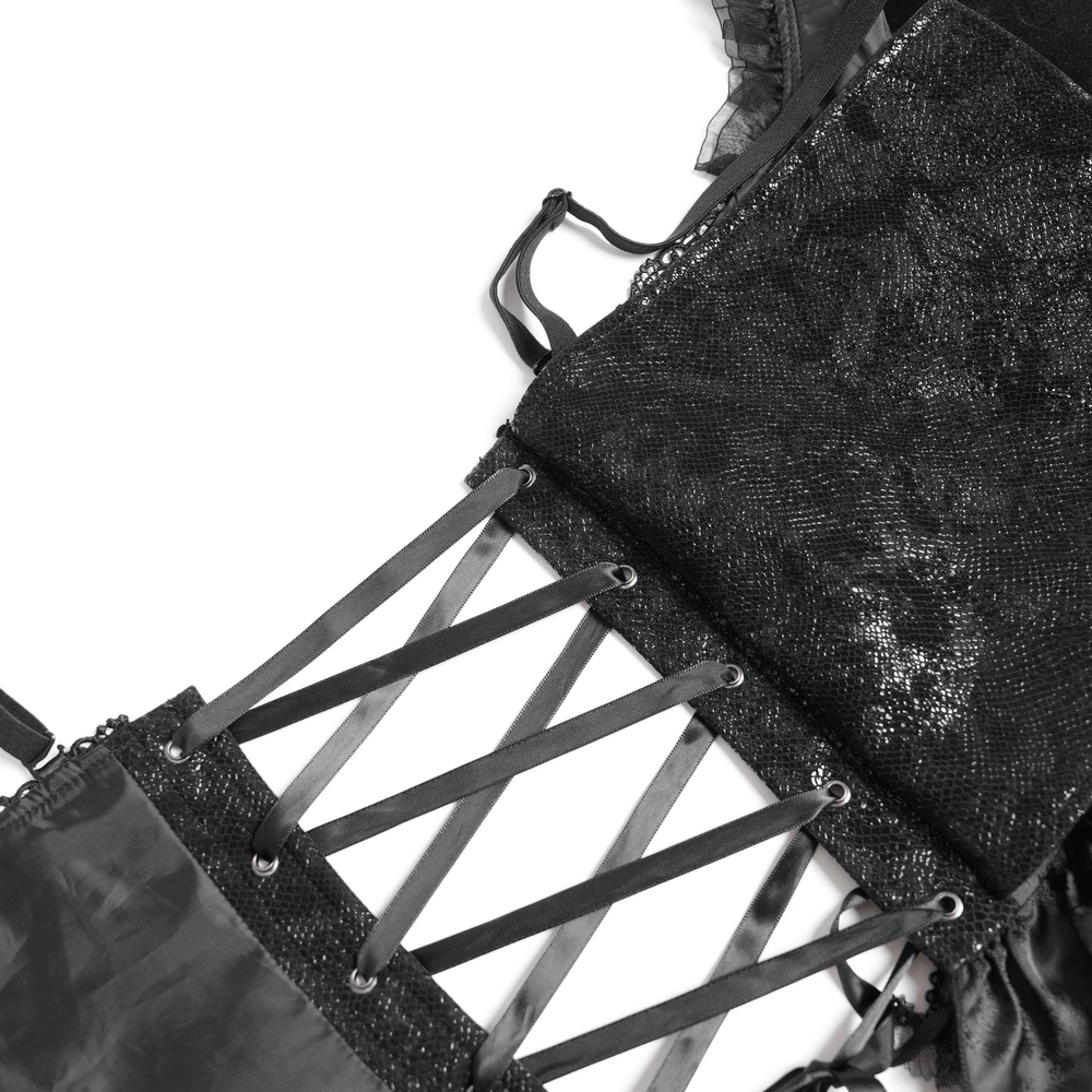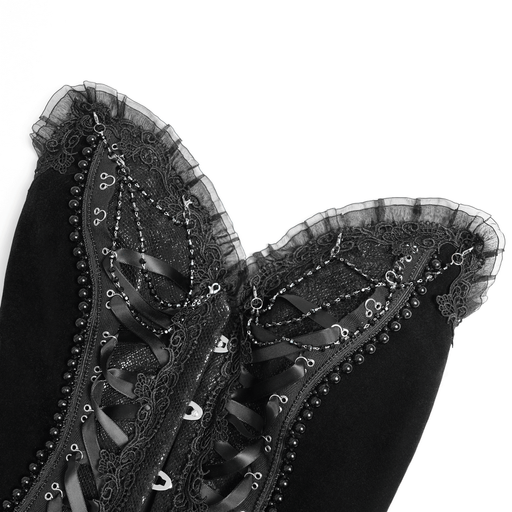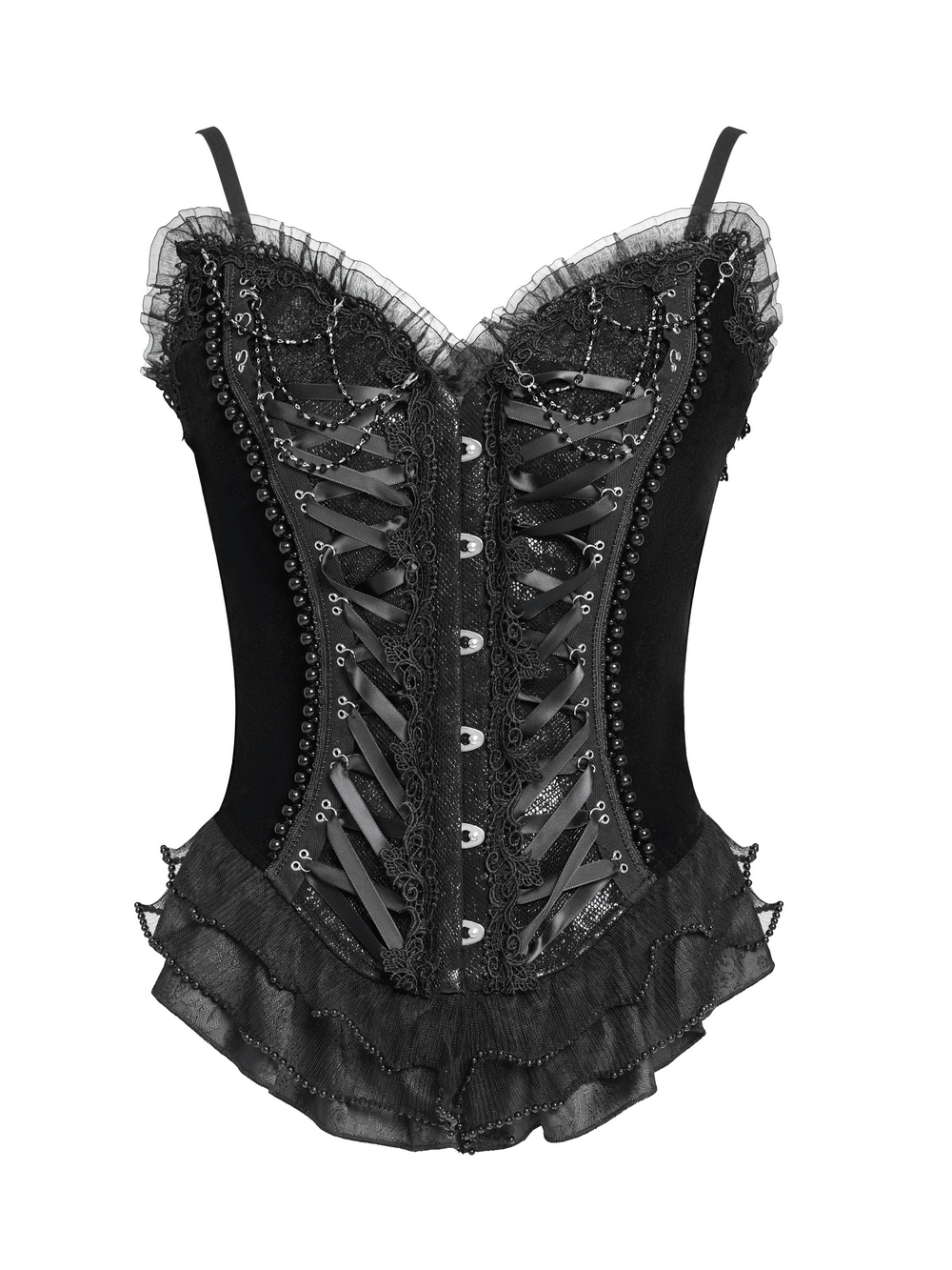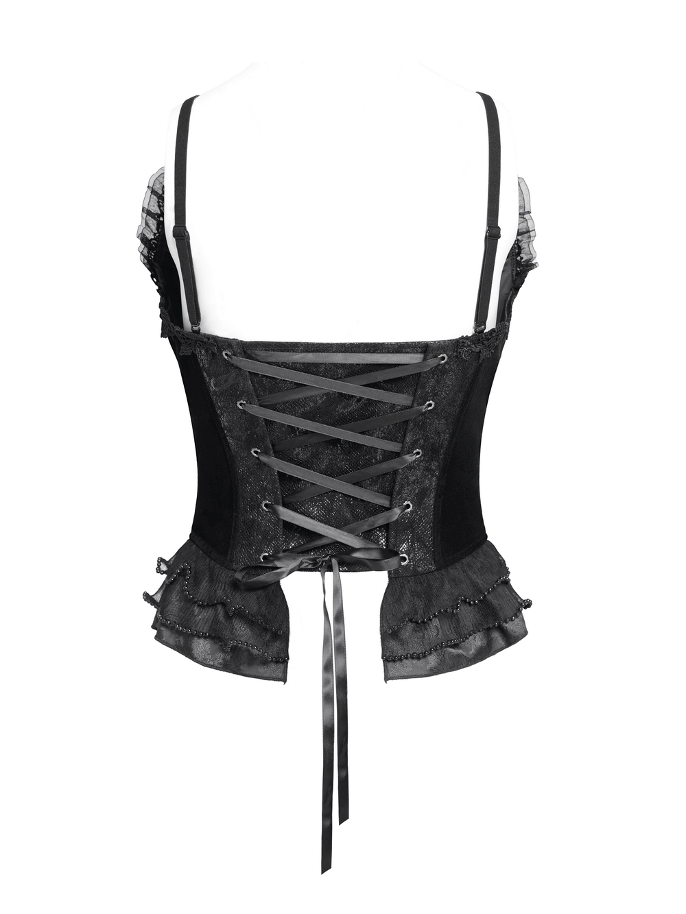 Gothic Lace Bustier with Satin Lacing and Ruffled Hemline Accent