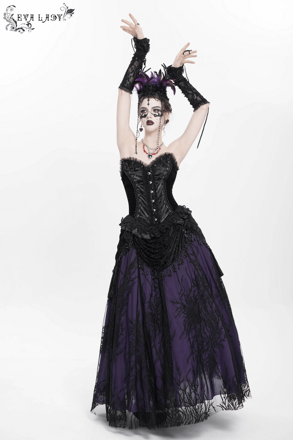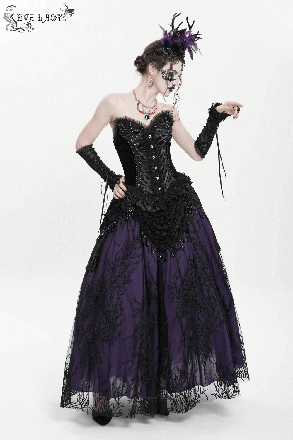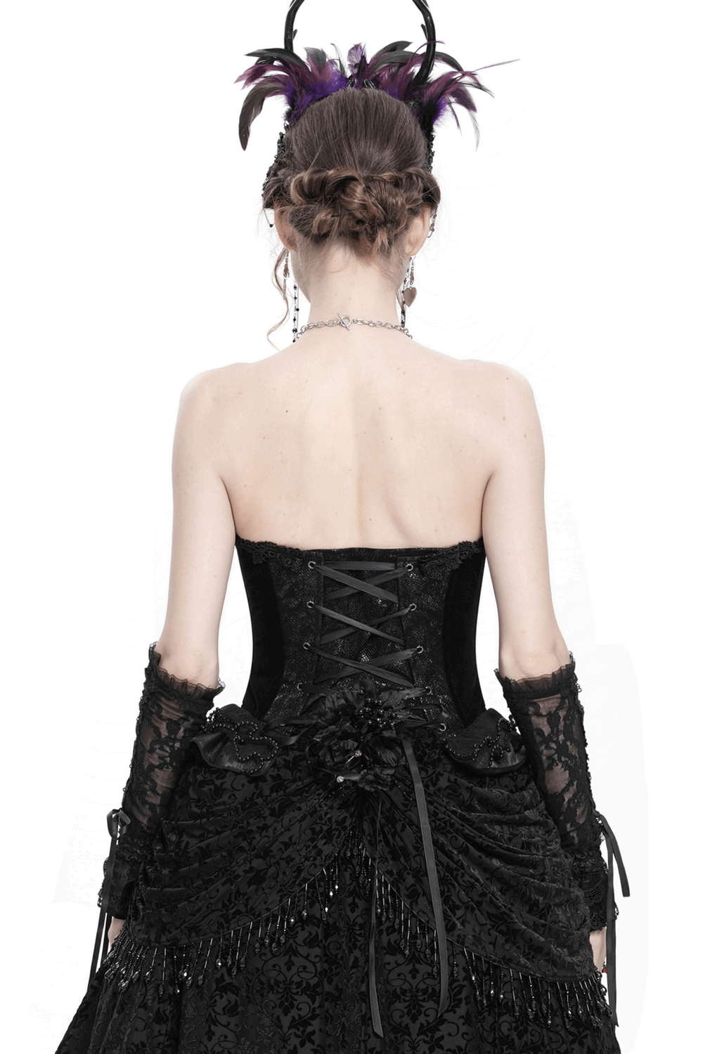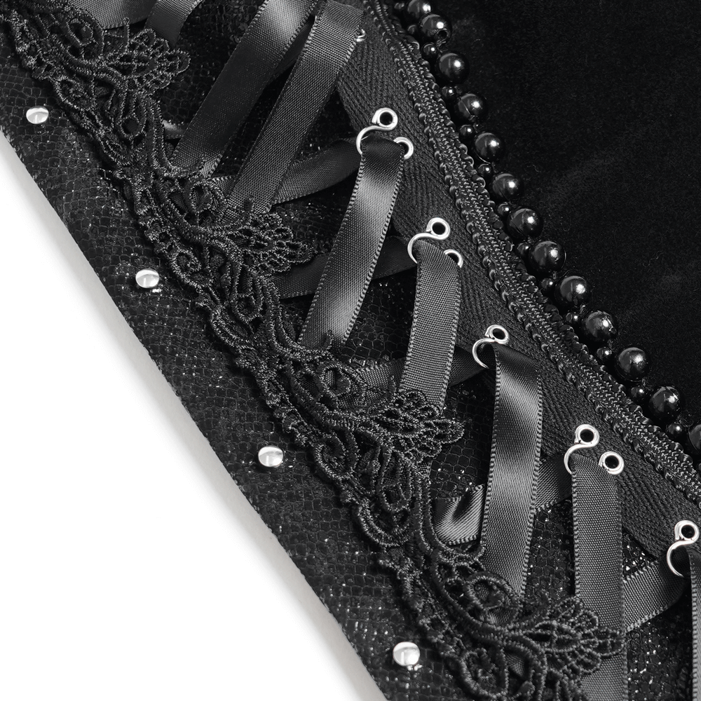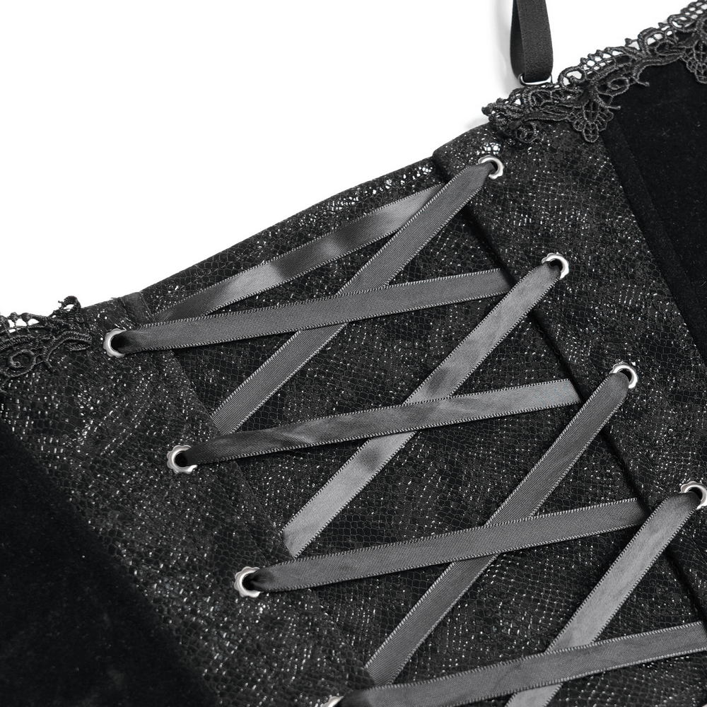 Gothic Lace Bustier with Satin Lacing and Ruffled Hemline Accent