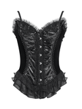 Sexy Lace-Up Corset with Satin Straps and Ruffled Edging