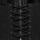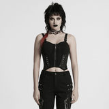 Stand out in this bold cyberpunk corset waistcoat crafted from micro-elastic twill. It features striking 3D rubber patches with diagonal studs and bold buckle strap accents. The lace-up back allows for an adjustable fit, creating a powerful silhouette. A must-have for futuristic streetwear and alternative fashion fans seeking high-impact style.