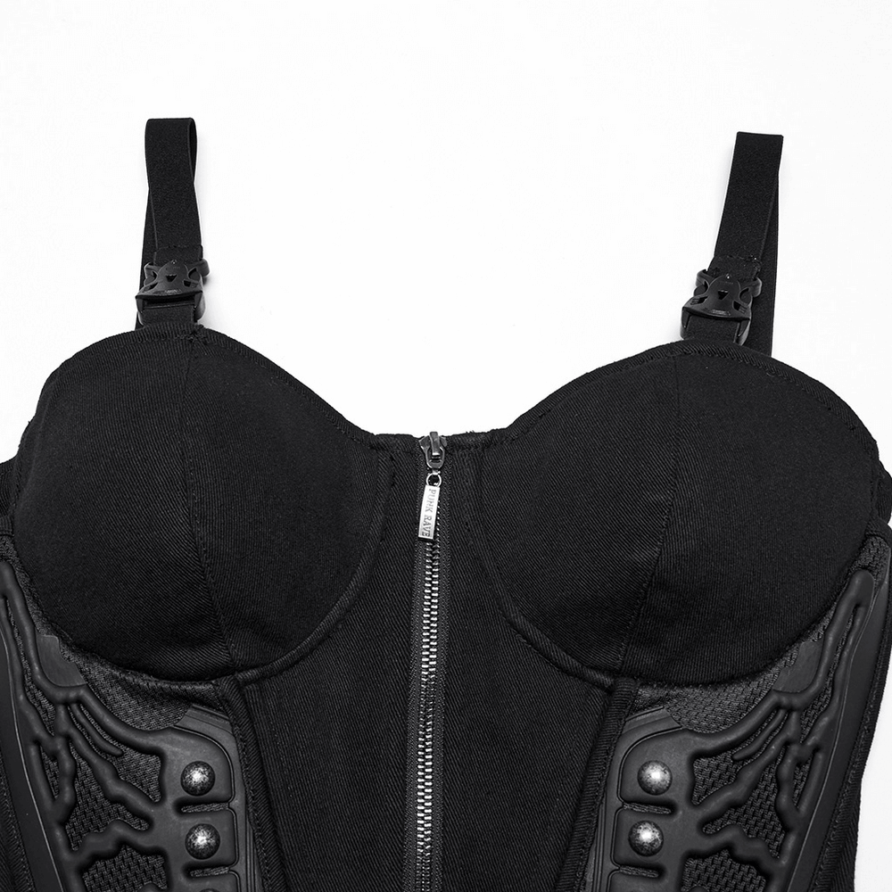 Edgy Cyberpunk Waistcoat with Studded Rubber Panel Detailing