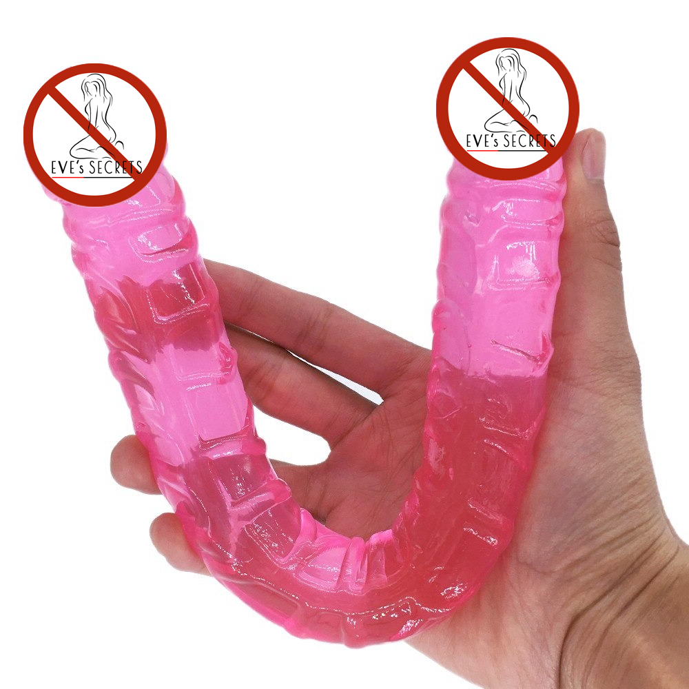 Godes réalistes longs à double extrémité translucides / Vagin doux flexible et jouets sexuels anaux