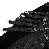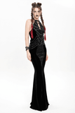 Enter the night in this gothic velvet maxi dress with a halter neck, faux leather strap details, and cascading chain accents. Tailored in a slim silhouette with dramatic floor-sweeping length, it merges dark romance and alternative edge. Ideal for gothic soirées, cosplay events, or striking evening attire, this gown exudes refined elegance with a bold and rebellious allure.
