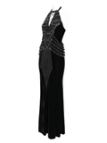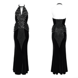 Velvet Gothic Maxi Dress with Chains and Halter Neck