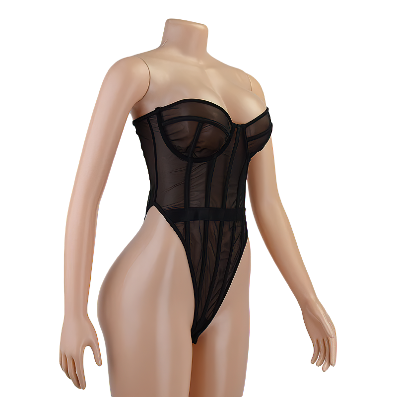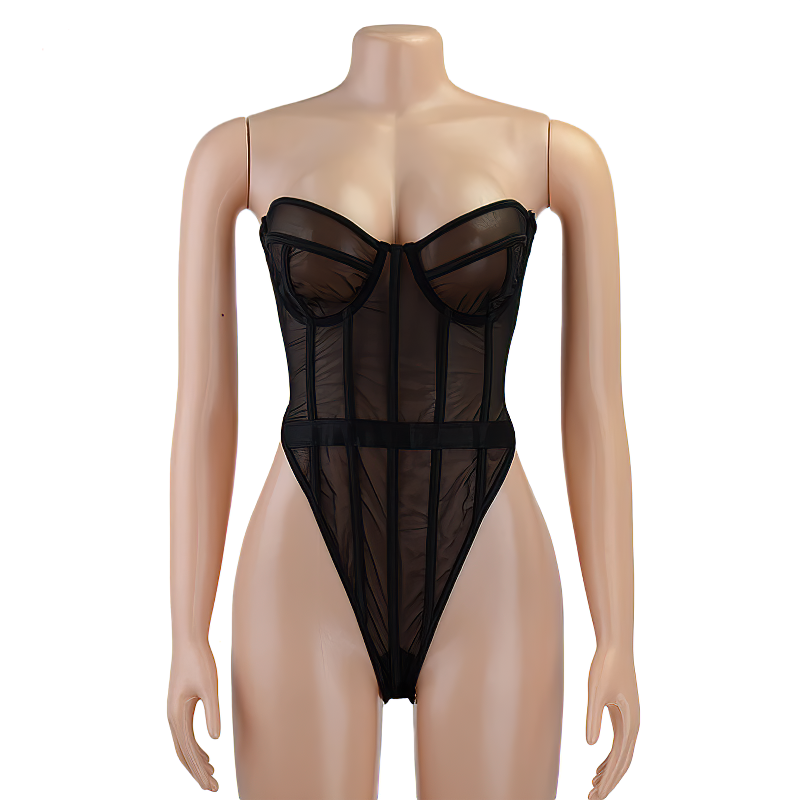 Body sans bretelles érotique pour femme / Body moulant en dentelle sexy pour femme
