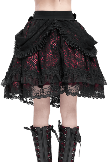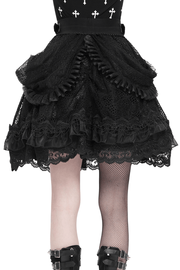 Layered Gothic Lace Skirt with Ruffles and Belt Details