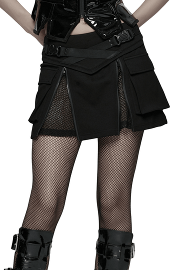 Punk Techwear Skirt with Zippers and Adjustable Front Split This punk techwear skirt combines stretch knit and mesh fabric for a comfortable fit. Equipped with functional 3D pockets and adjustable zippers, you can modify the split height for a daring...