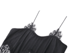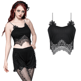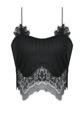 Black Gothic Camisole Top with Lace and Ribbed Fabric