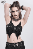 Edgy Women's Crop Top with Strappy Design and Pentagram