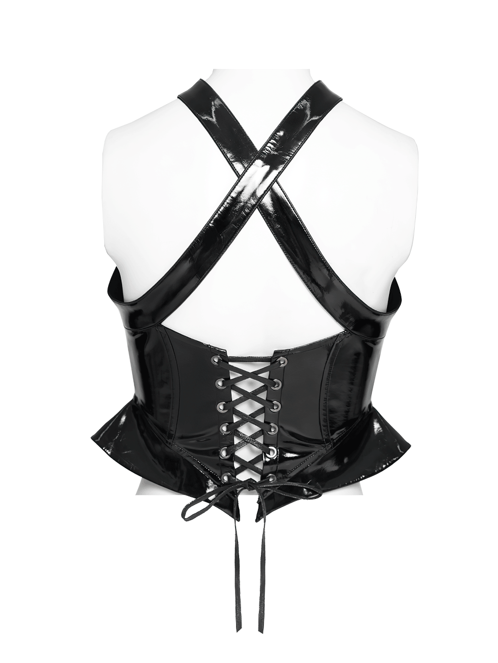 Gothic Patent Faux Leather Lace-Up Women's Corset Top
