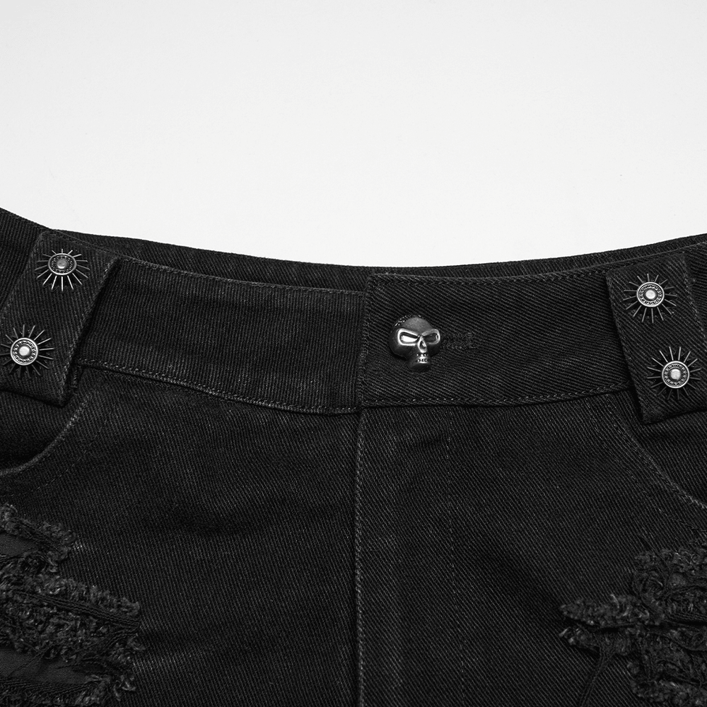 Punk Denim Shorts with Removable Bag and Leg Straps