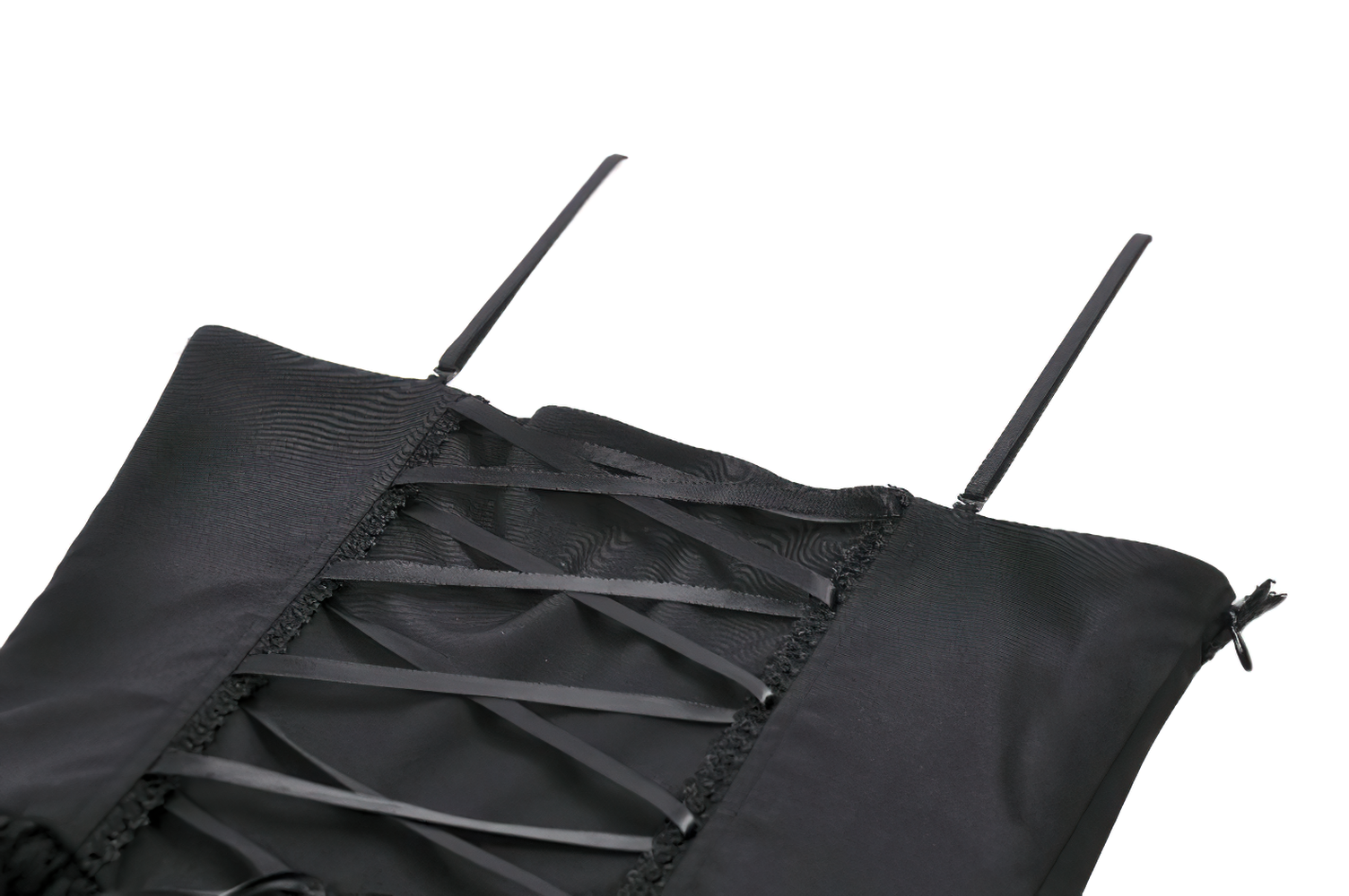 Embrace dark romance in this gothic mini dress featuring tiered lace ruffles and a corset-style silhouette. Bold red lace panels create striking contrast, completed with buckle straps at the bust for a punk vibe. Adjustable spaghetti straps and lace trim highlight the neckline, while rear corset lacing allows a custom fit. Ideal for club nights, concerts, alternative dates, or cosplay outfits. Style it with fishnets and platforms for a fierce finish!