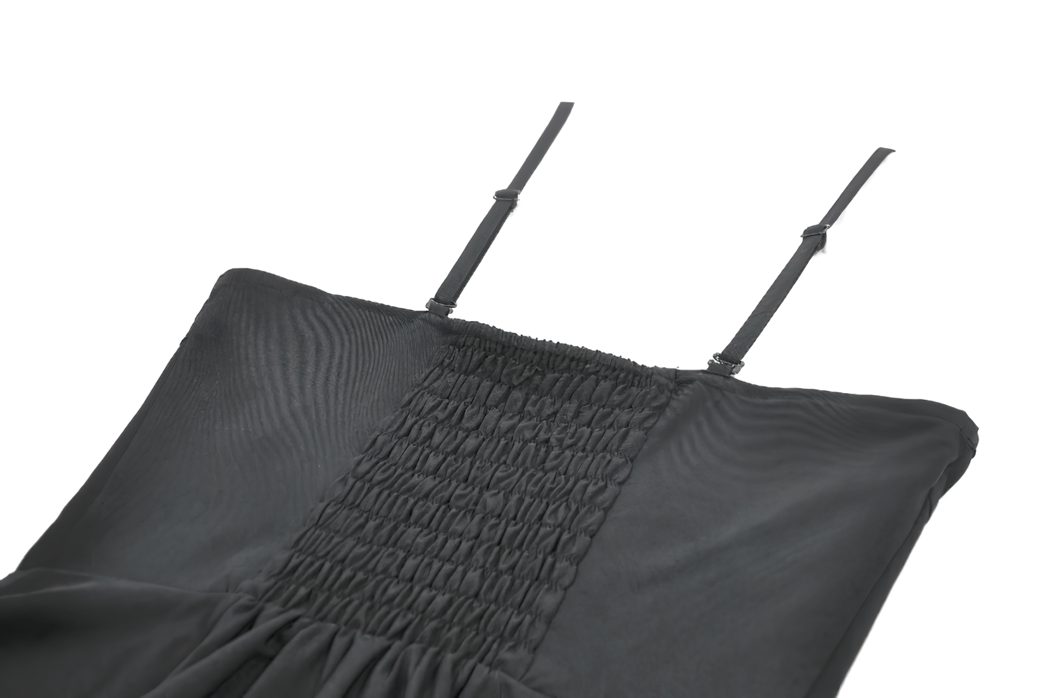 Mystic Black Strap Dress with Zipper and Mesh Hem