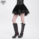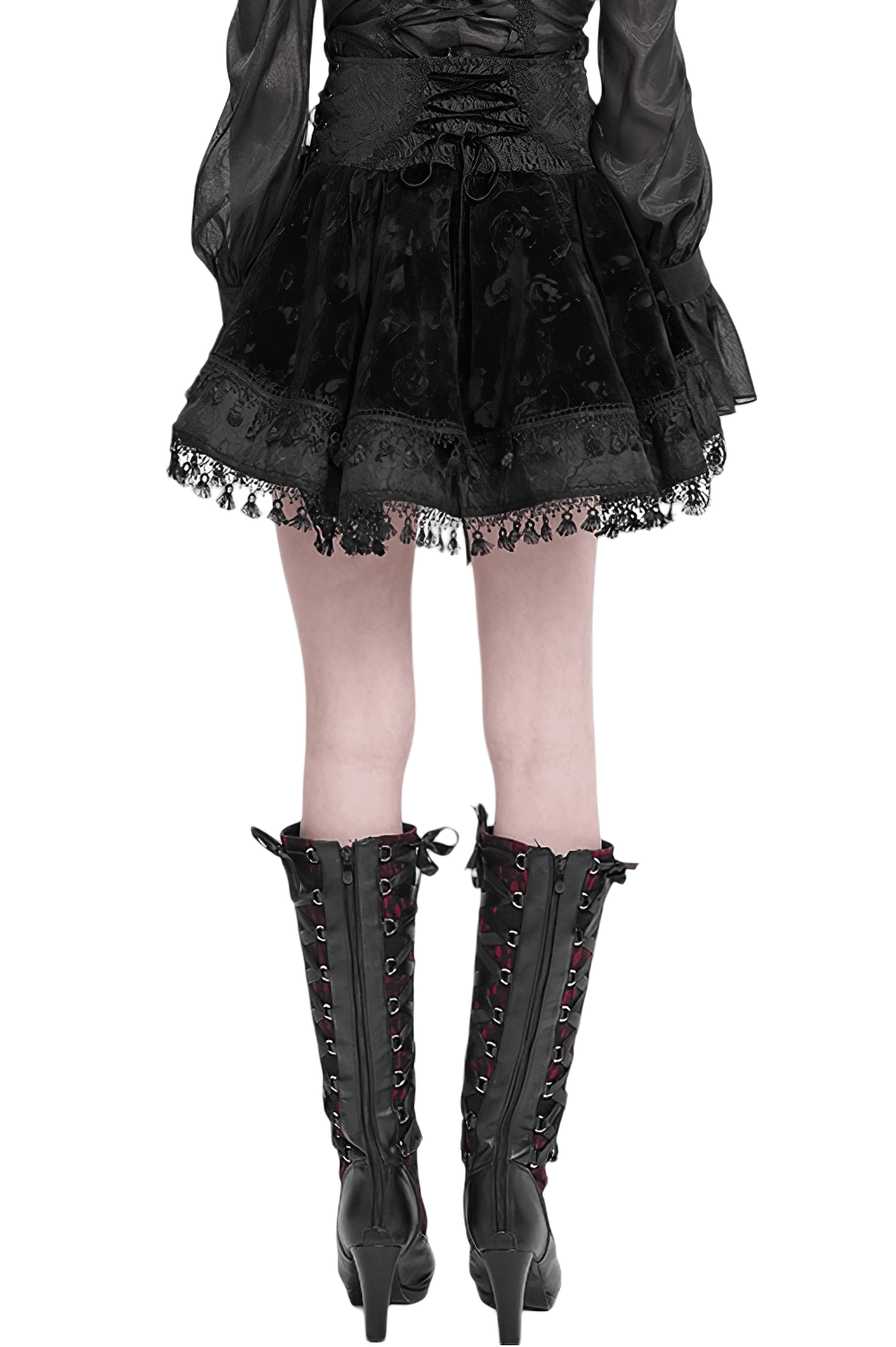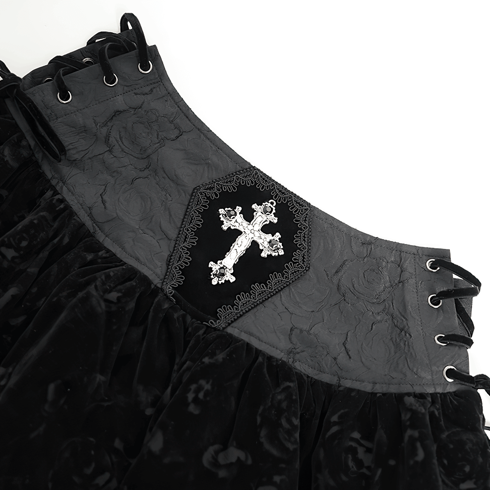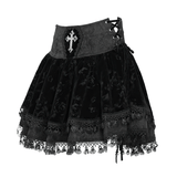 Black Velvet Skirt with Lace-Up Front and Cross Detail