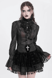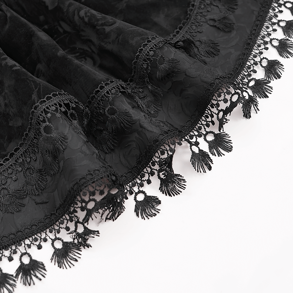 High-Waisted Victorian Gothic Skirt with Cross Embroidery and Tassel Hem