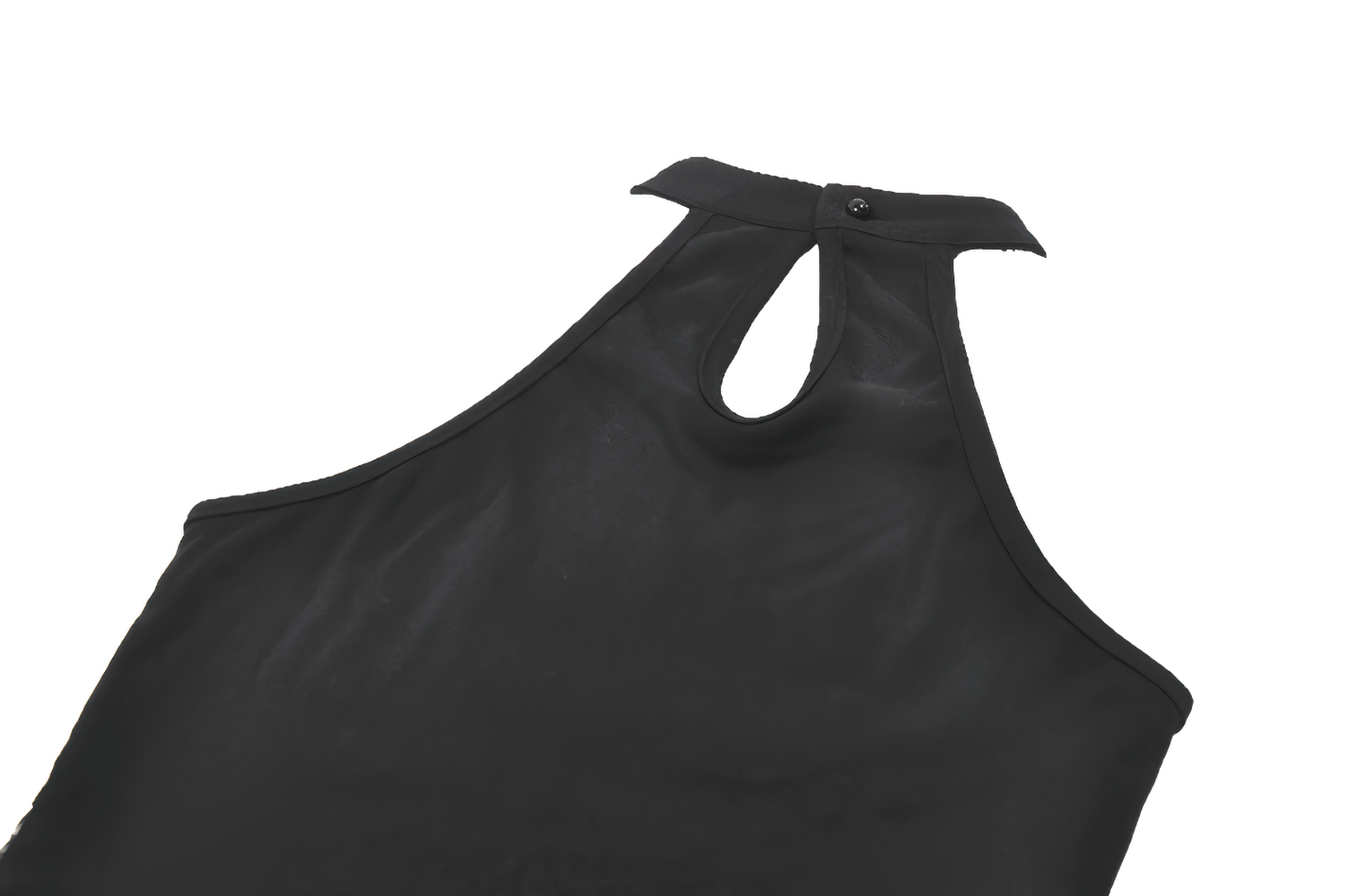 Dark Mesh Halter Crop Top with Buckle and Panels