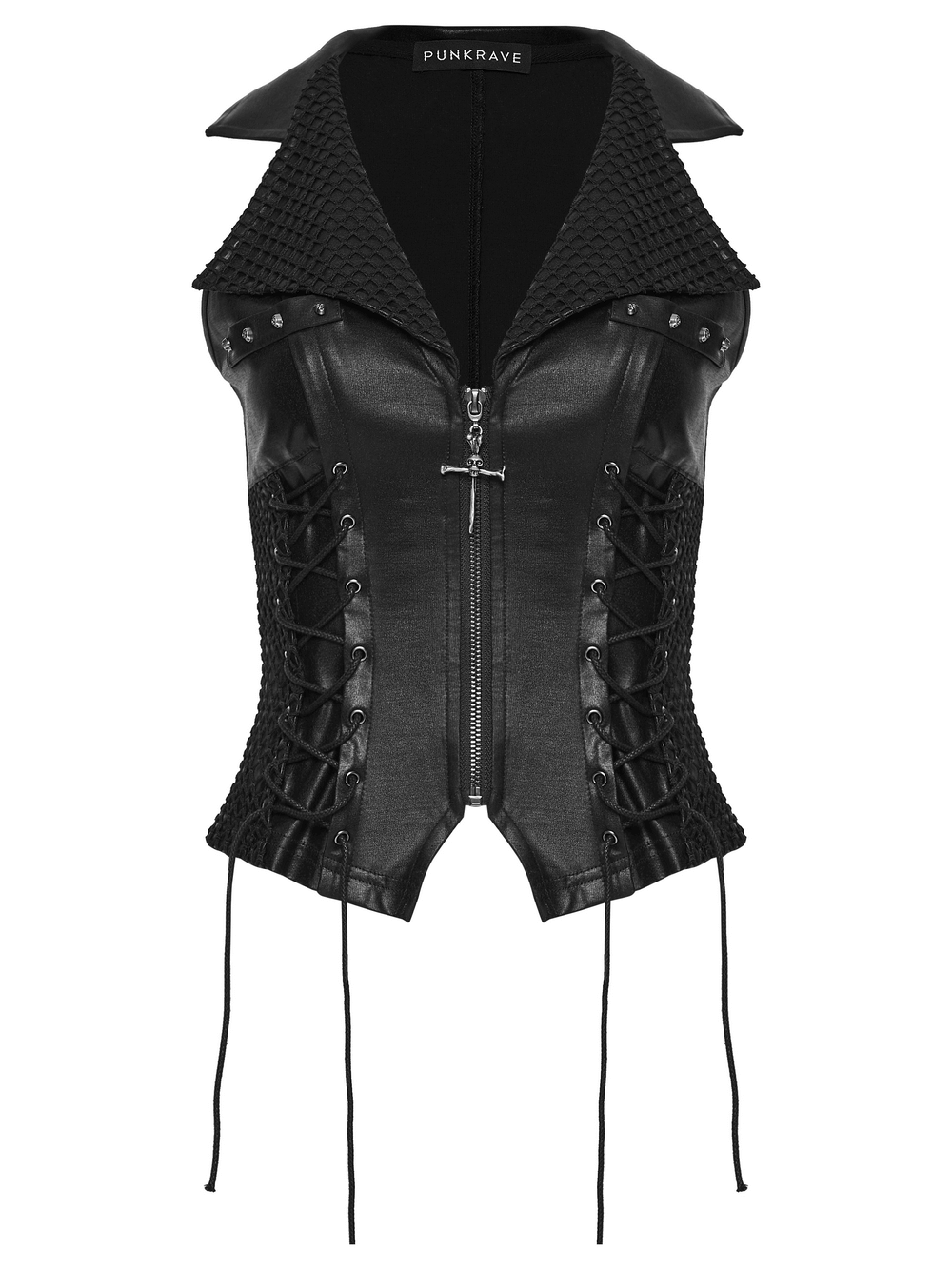 Sharp Punk Vest with Mesh Detailing and Gothic Pendant
