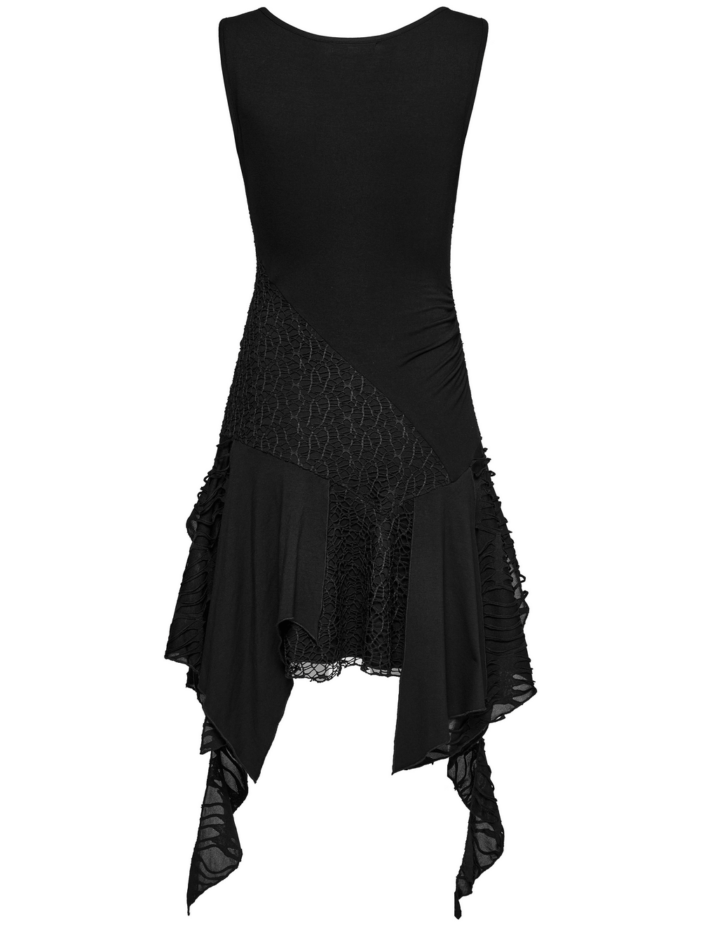 Gothic Sleeveless Dress Featuring Mesh and Asymmetrical Hem
