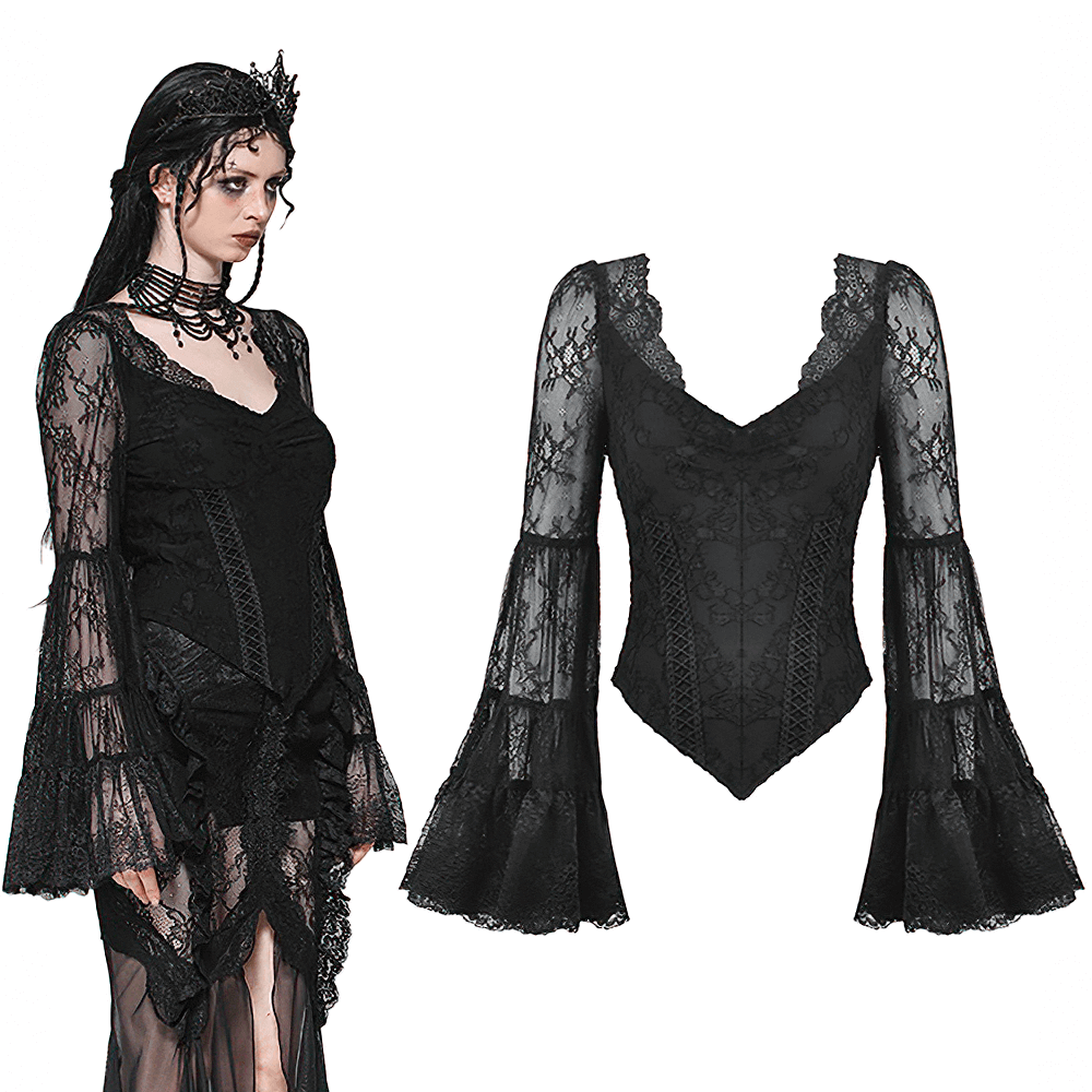 Sophisticated Women's Gothic Black Lace Top with V-Neck