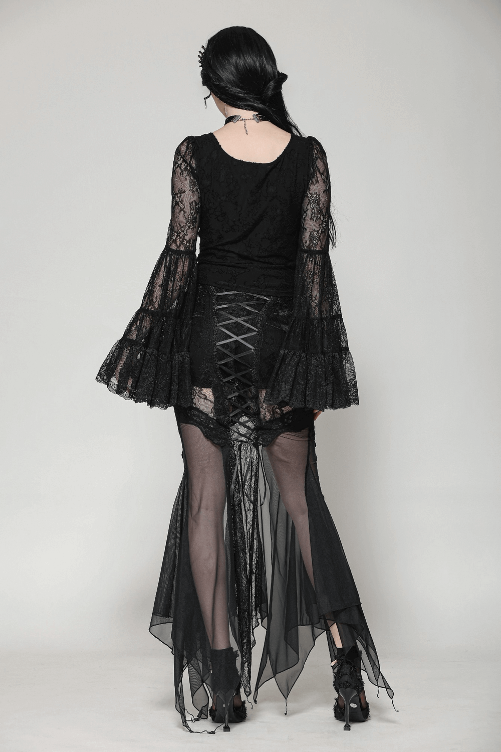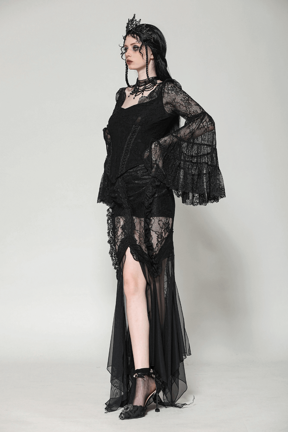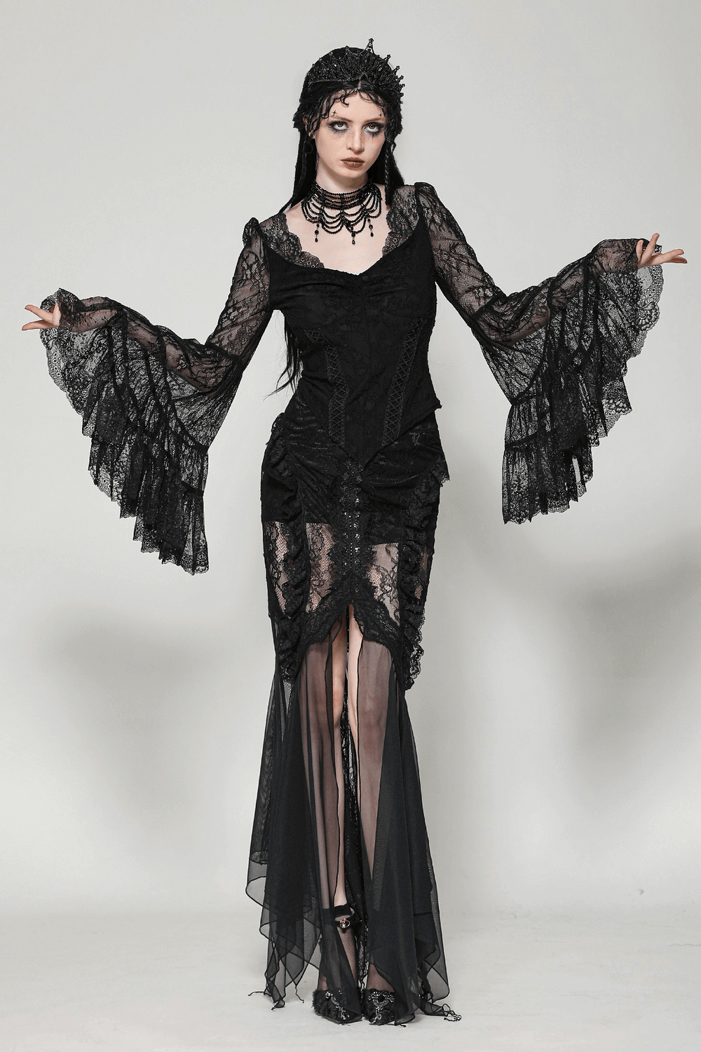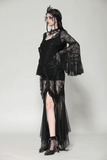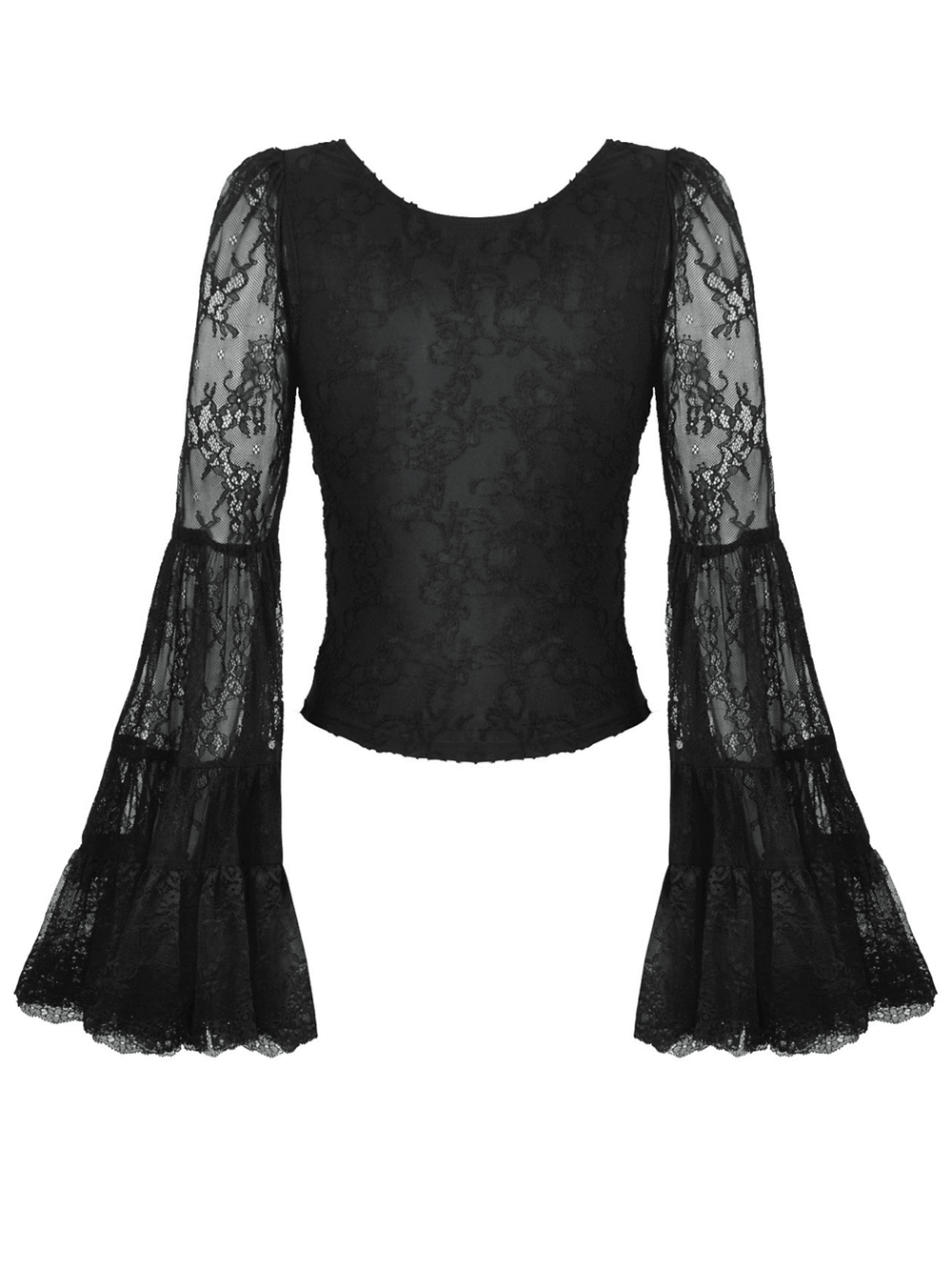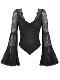 Our Sophisticated Gothic Black Lace Top embodies timeless gothic allure with a modern twist. Designed with a deep V-neck and elegant flared sleeves, it showcases intricate lace patterns for a vintage-inspired charm. Perfect for special occasions or adding a bold touch to your daily style, this top seamlessly blends drama and elegance. Ideal for those who love to stand out.